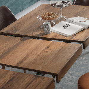 CONVIVIO Extendable dining table with metal base. Eco-wood top and 3 extensions