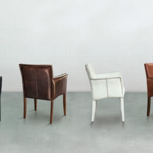 COCOON Chair with metal round shape legs, bronze or graphite coating.