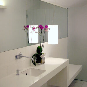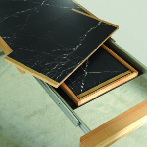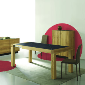 CROSS Fixed table with solid wood, crystal or Crylam top.