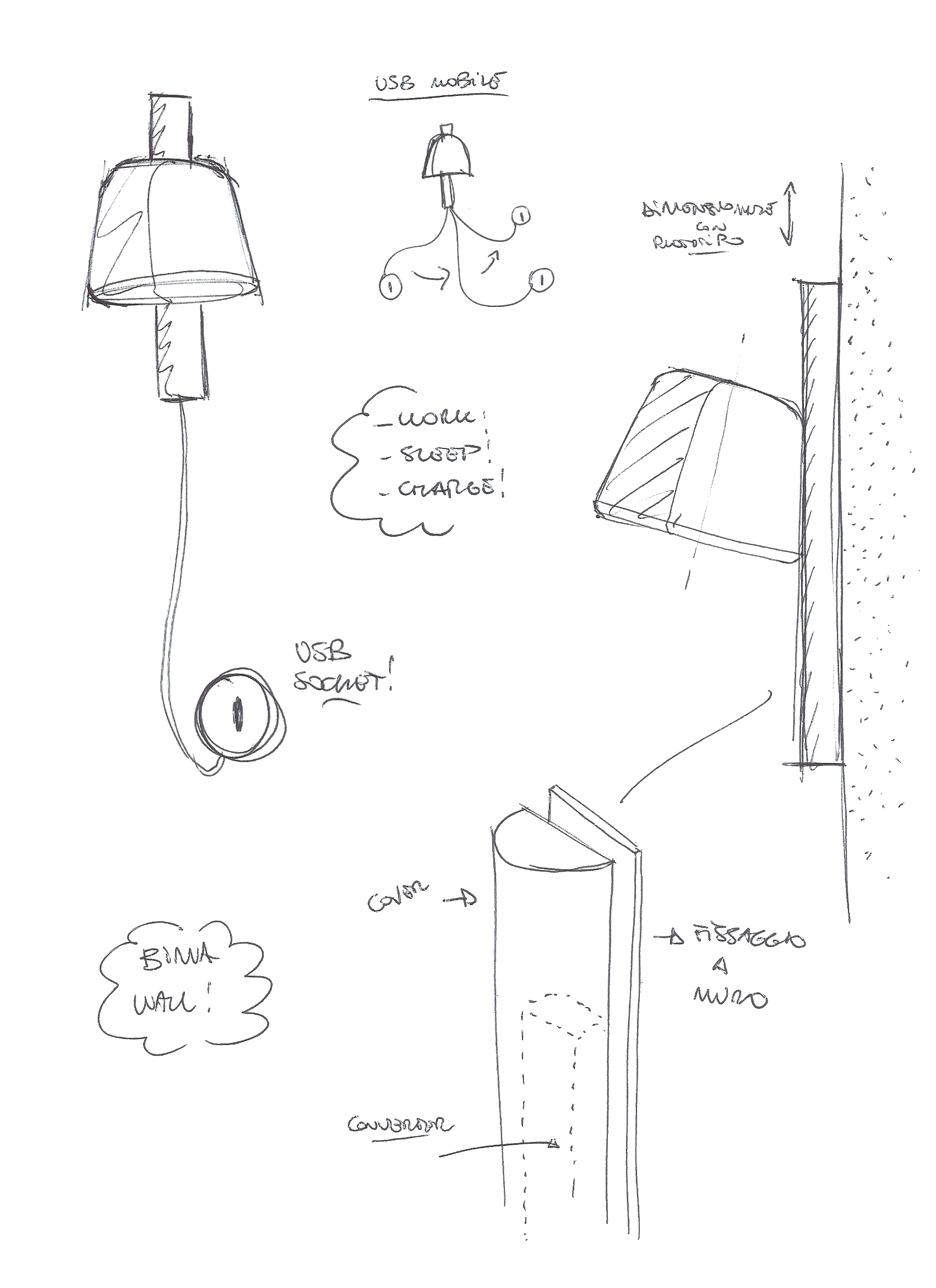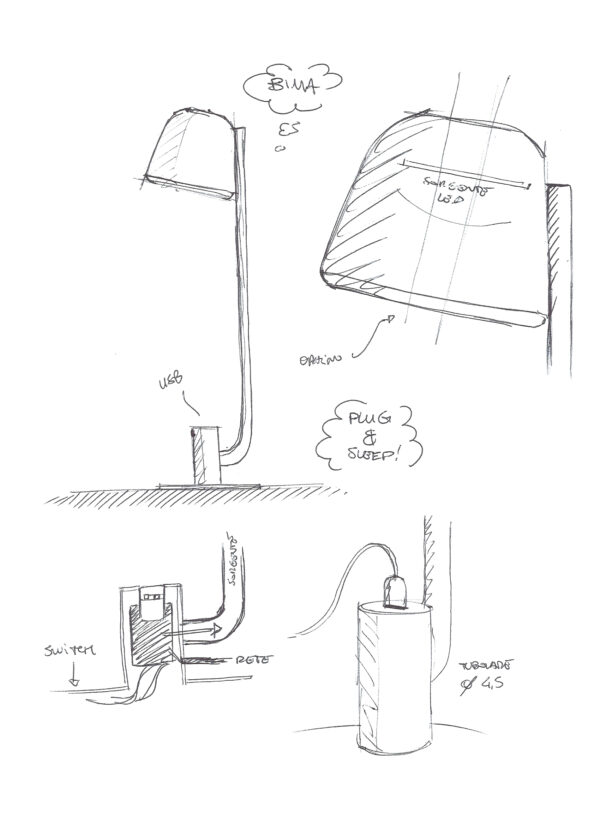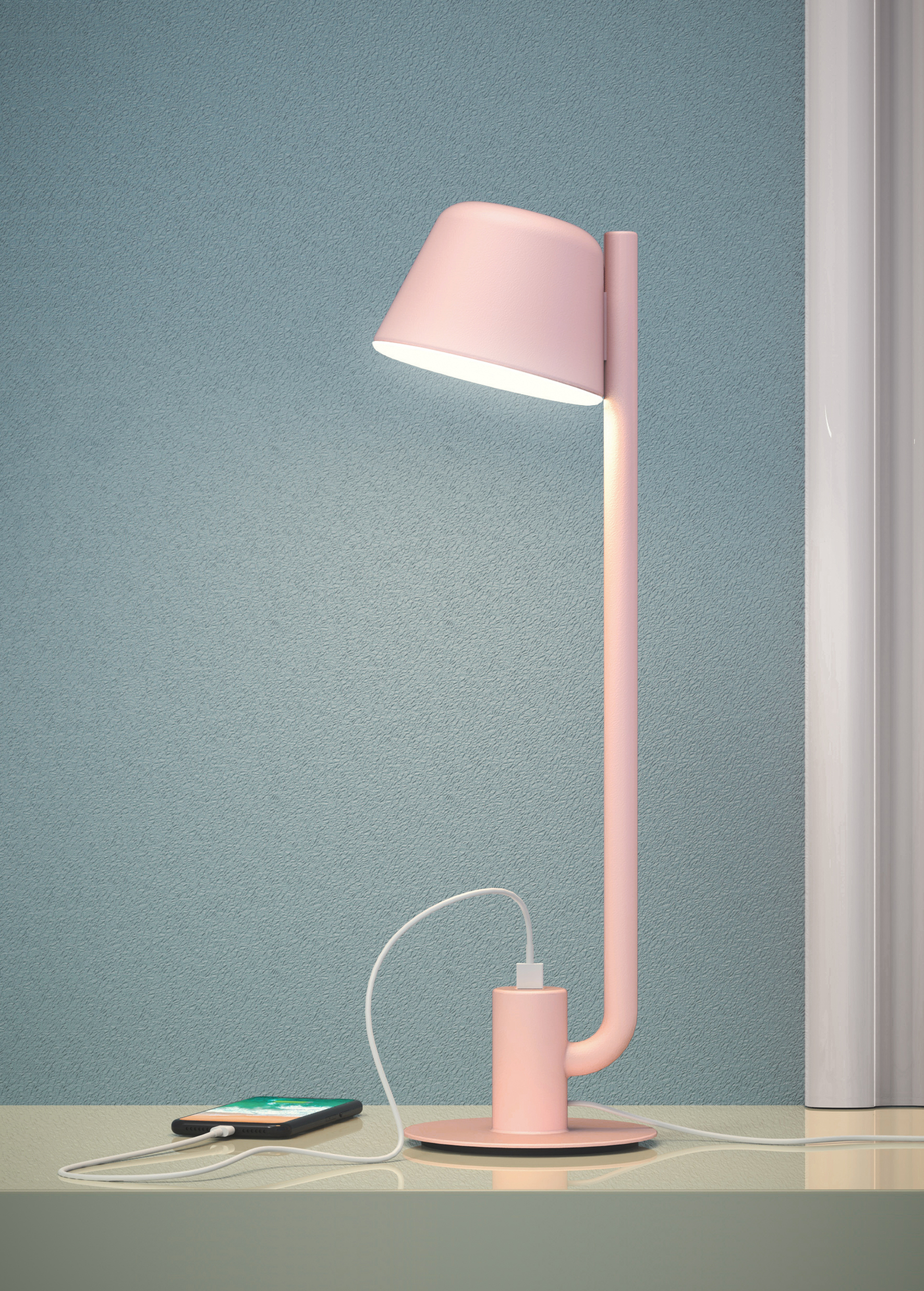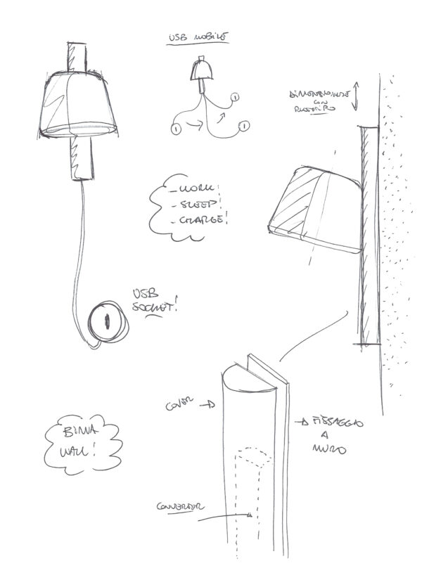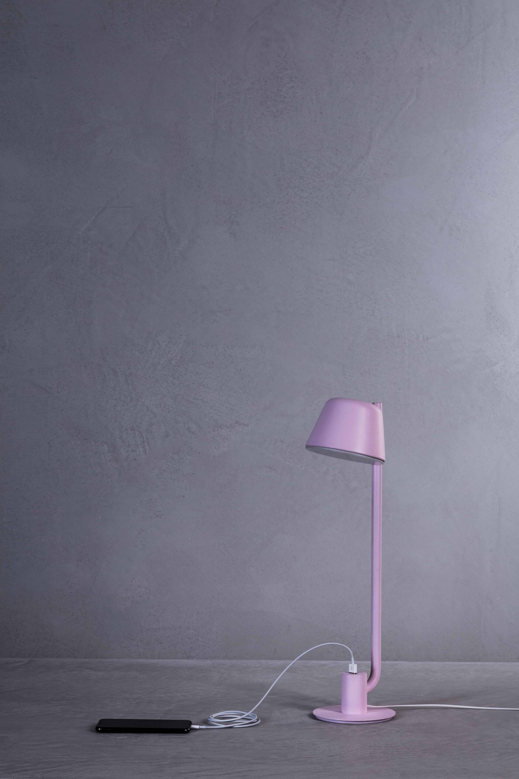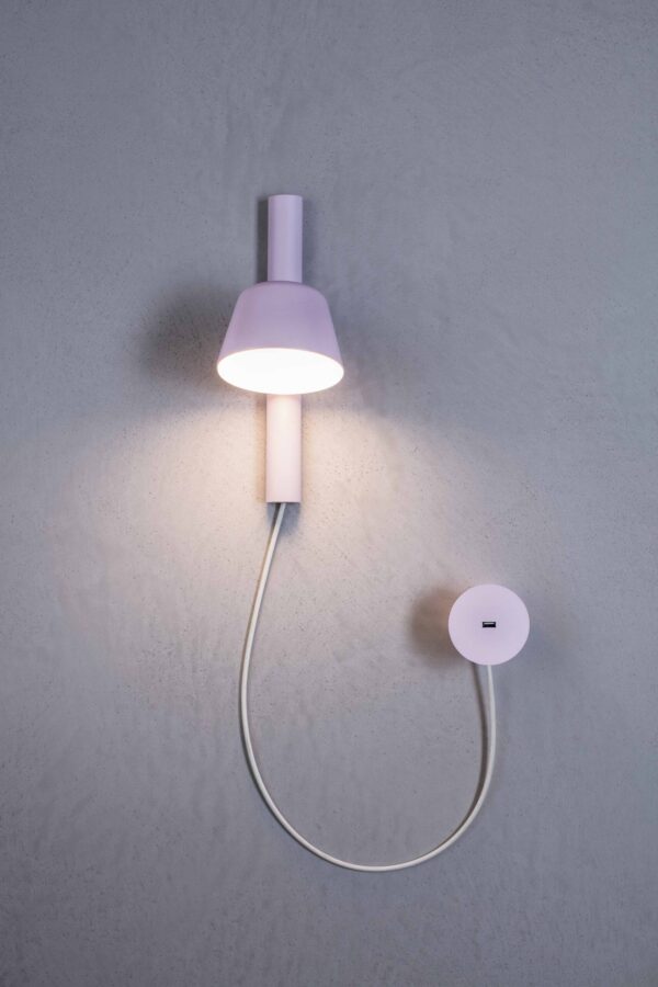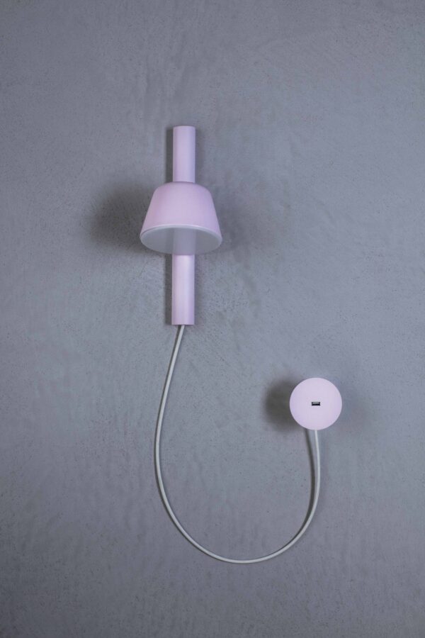 Bima is a story with a sweet technical feature, created from the natural adaptation of light to the integrate recharge function. The support of the table version is divided into two parts so that USB port is easily accessible, while in the wall version the port is movable to allow its flexible positioning. The unusual pairing with the wall light creates an entirely new product on the market and offers a distinctive experience to customers. Materials Painted metal structure, lower diffuser disc in white polypropylene, universal USB port, white cable. NCS colour S0520-R30B pink. Custom NCS or RAL colour available on request.