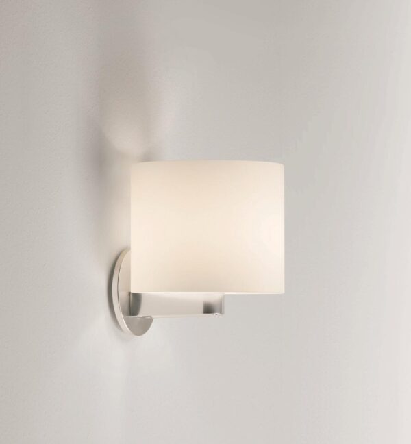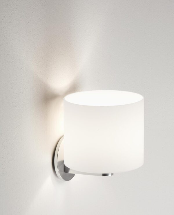 Chrome or Matt white painted aluminium structure. Satin opal white or glossy white blown glass diffuser. Satin pyrex IP44 protection. In case of blown glass components, consult the quality section