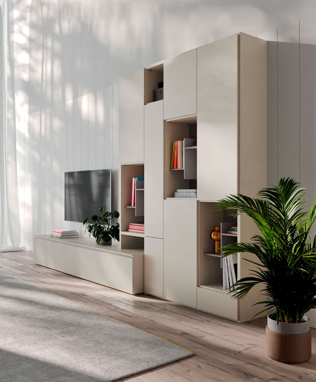 The special elements are integrated into the living room solution and play with thinner and