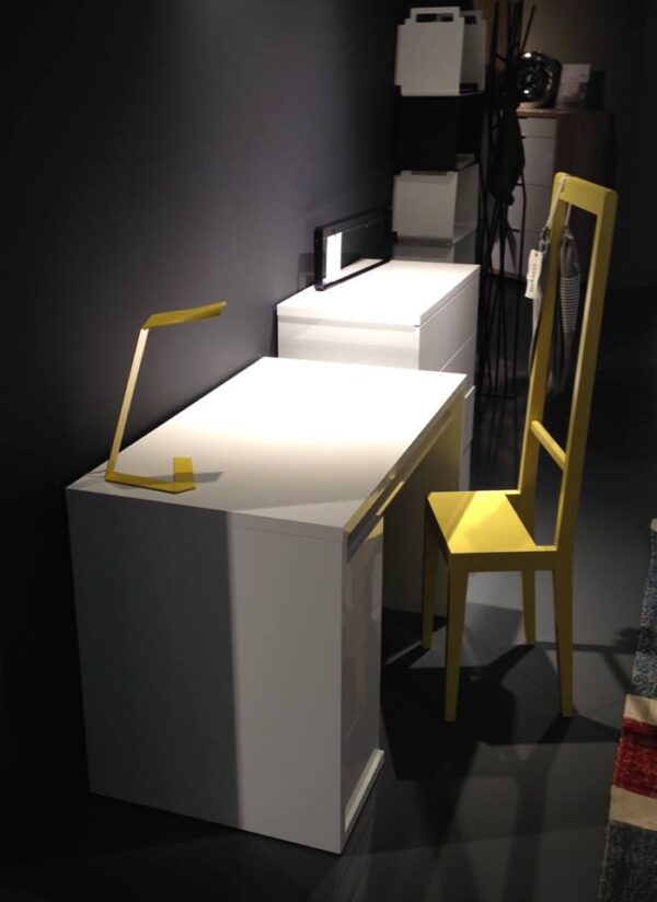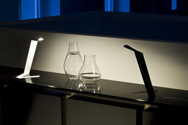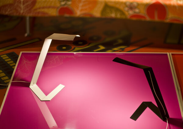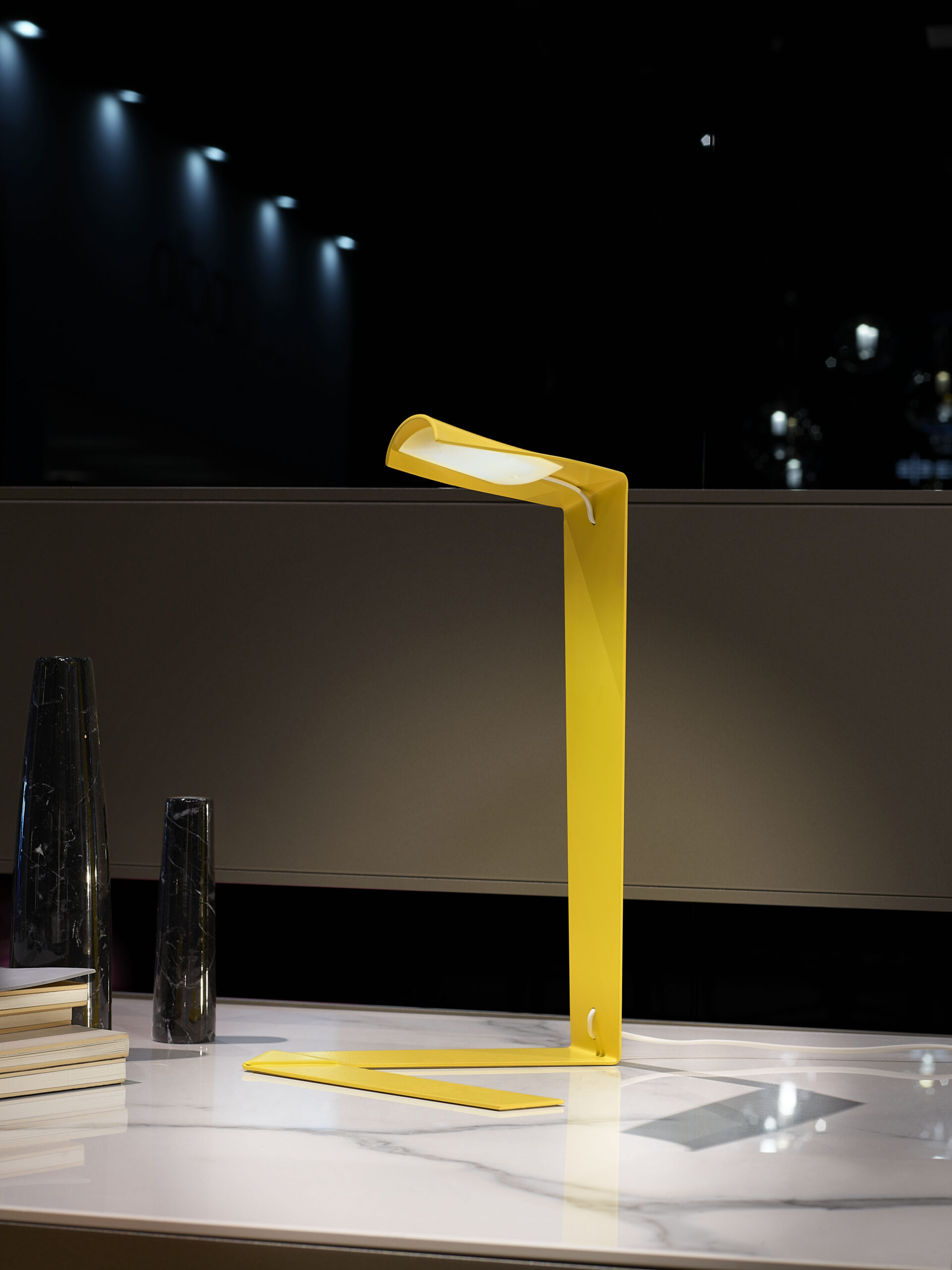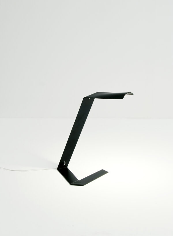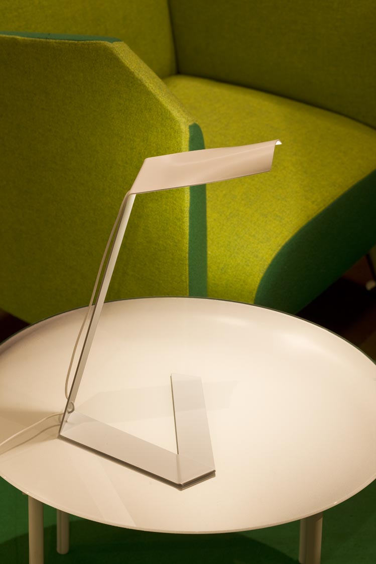 “I wanted to create a table lamp using as few materials as possible. It was not just a matter of reducing its design but instead of making economic choices about the materials to be used. A simple metal band seemed to me an interesting approach, in combination with a flat LED perfectly integrated into the metal surface. I must say that following this approach has been very stimulating”. It is a story of light signed by Jannis Ellenberger.