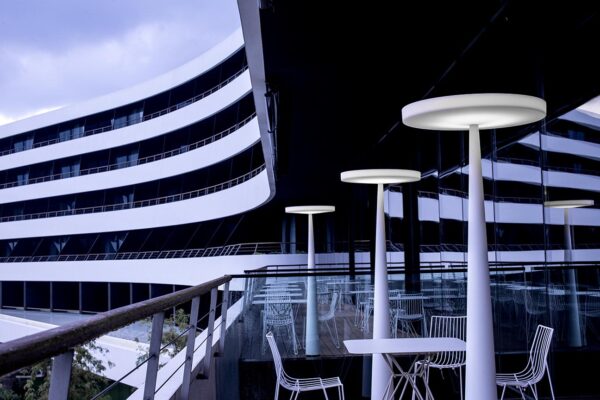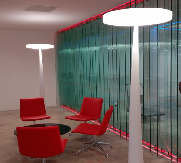 Presenting a unique story, so unrepeatable that it must be told with urgency, this is the goal of Equilibre. A design that can assume the leading role in the most diverse and unusual projects; able to change, adapt, and dictate the rhythm of spaces and light, in a loud clear voice and with no fear. This collection owes its name to the subtle formal balance between its tapered stem and large circular diffuser. In the floor version, its 2 metres height, enhances its intriguing sculptural appearance. After standing out for years, it is now in LED version and customizable to meet every project requirements.