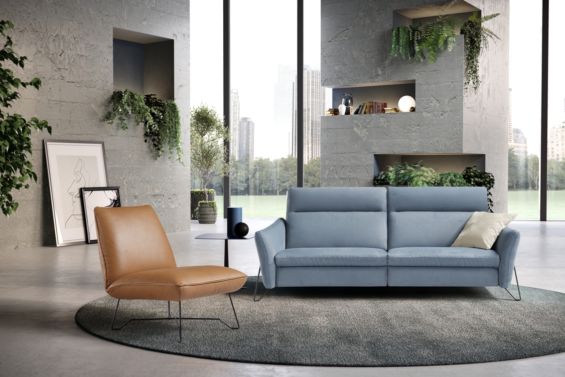 GAIA is the relaxing sofa with clean and essential lines, characterised by the elegant metal feet that goes on up the armrest. Available in more than 500 coloured coverings, GAIA has got the same industrial style of LIA armchair, combinabile with it to give a metropolitan look to your living space.