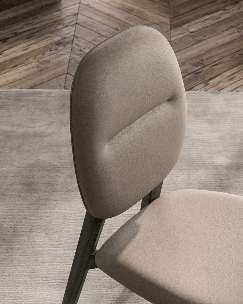From the harmonious match between wood and leather, a chair takes form and reveals its essential elements.