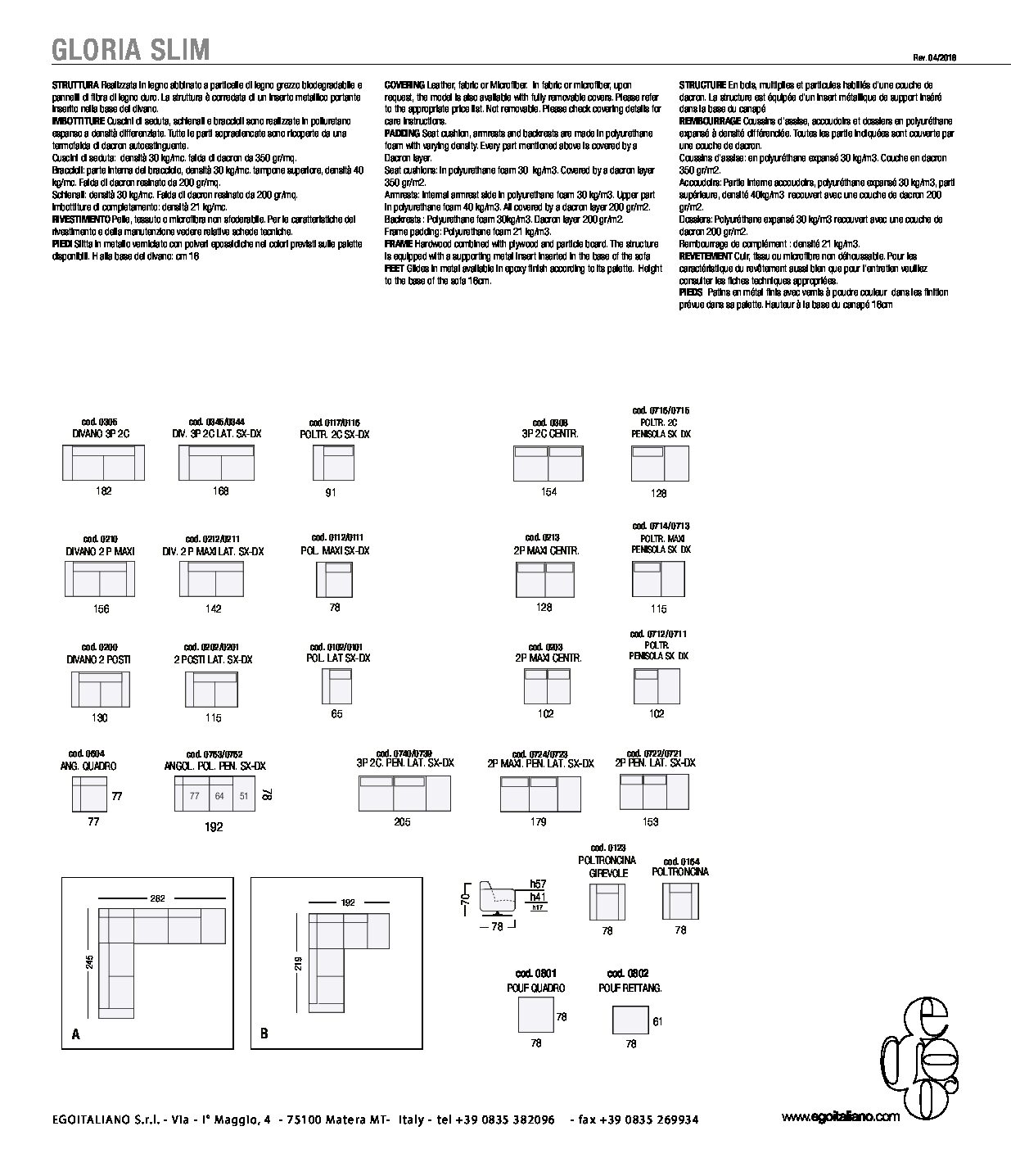 FEET: Glides in metal available in epoxy finish. Height to the base of the sofa 16cm.