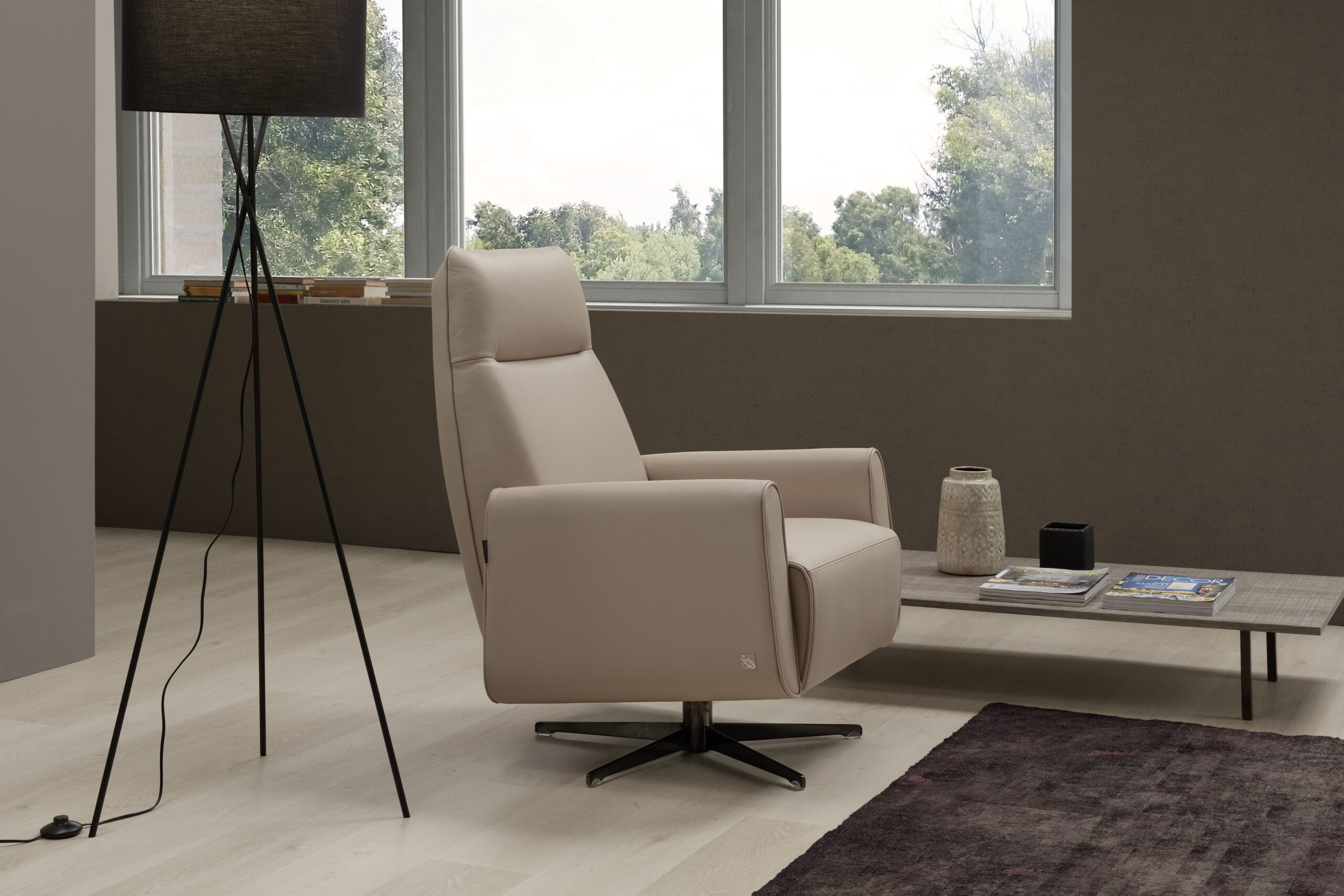 Suitable for both contemporary and formal workplaces, LIZZY is the swivel armchair with an adaptable style, also available in bergère version. Combine it to the rest of the furniture by choosing among different fabrics’ colours and basis, LIZZY will express your Ego at its best.