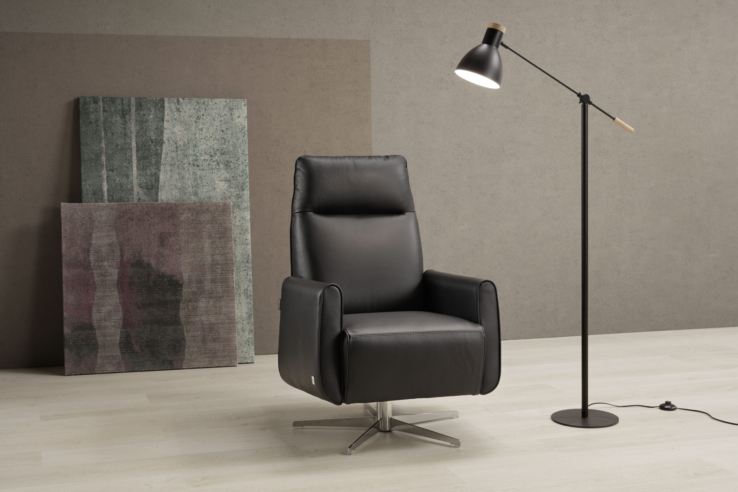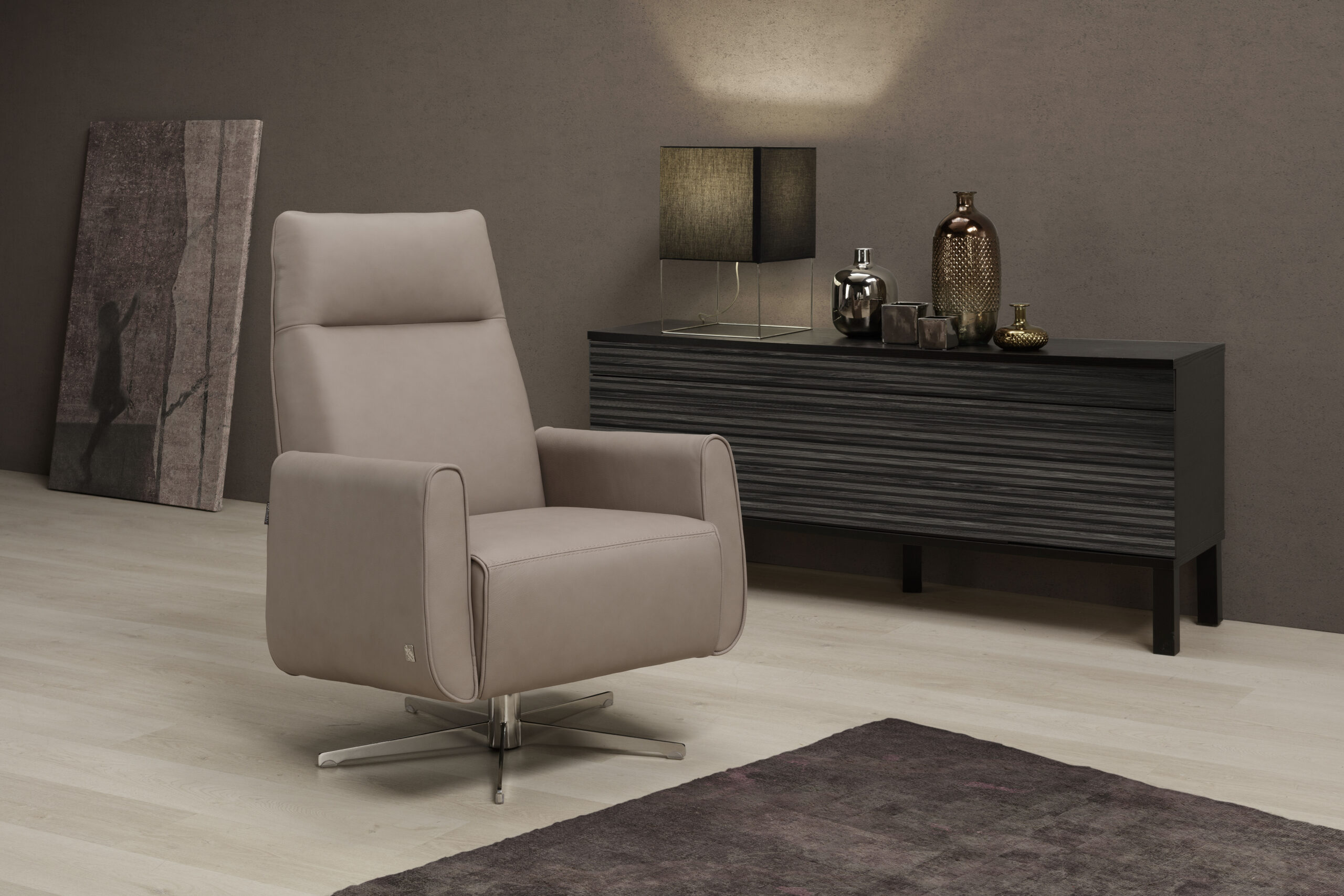 BASE: star shaped swivel, h 19 cm;,60 cm diameter.