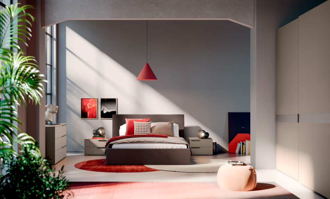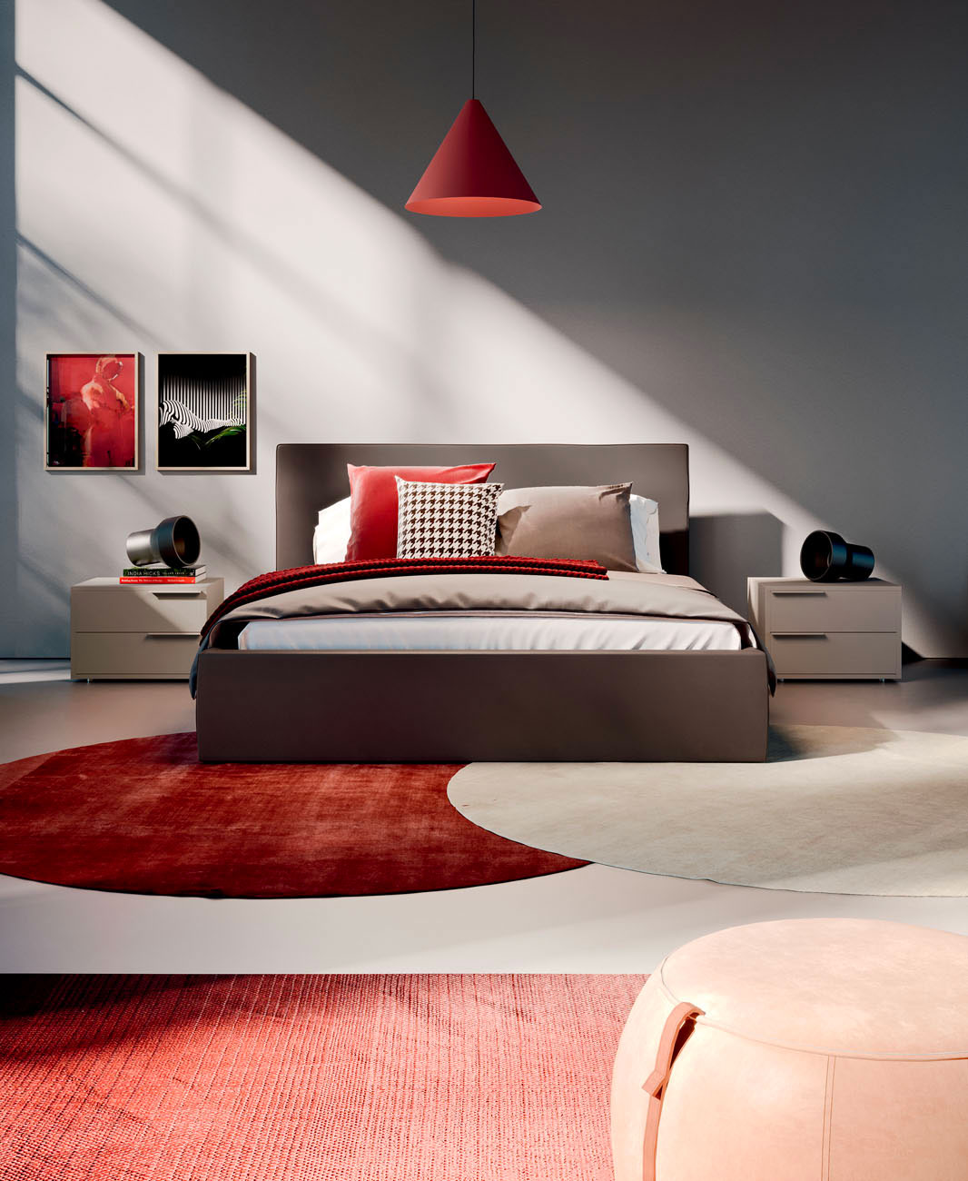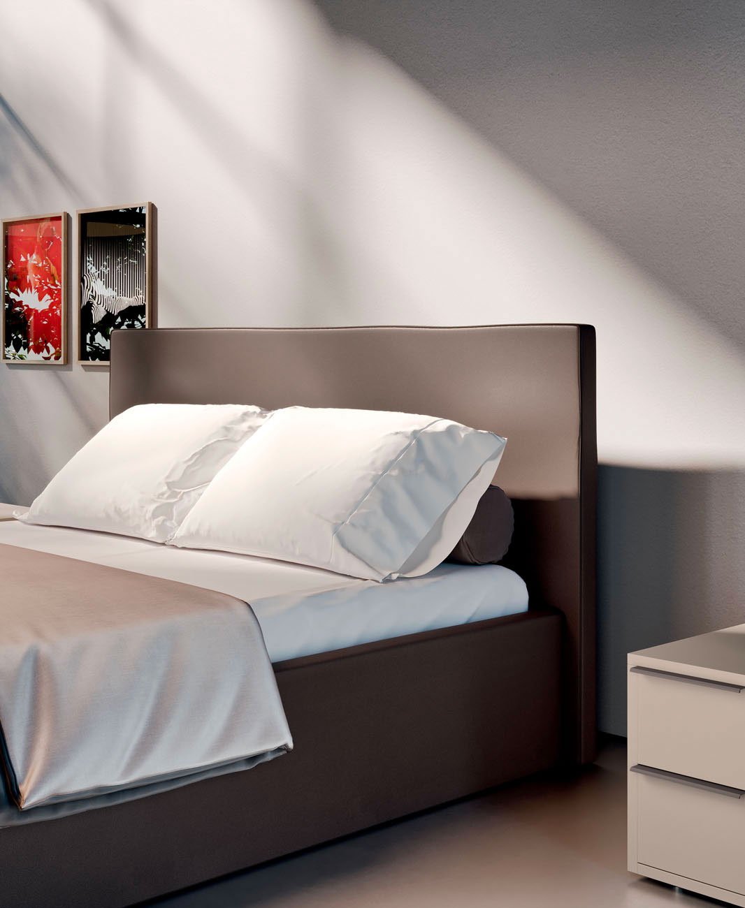 Lucas upholstered bed in eco-leather with bed frame with container.