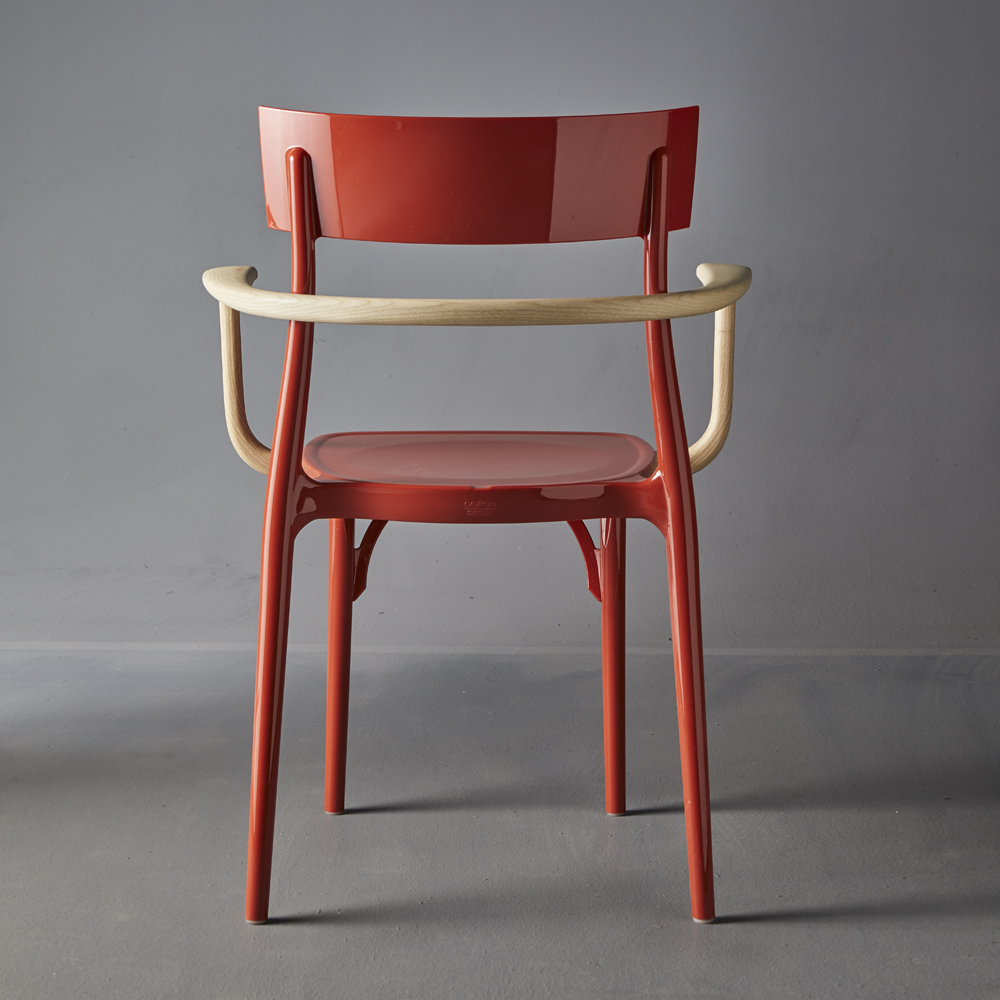 The version with armrest of Milano2015, encloses, in a single piece of furniture, what we love and identify us most. The tribute to the past passes from the recovery of traditional and well-known lines, the challenge of having made them with an innovative material and technology. And then there is wood, here conceived as an element of rupture and contrast, to represent experience and what we have always been passionate about.