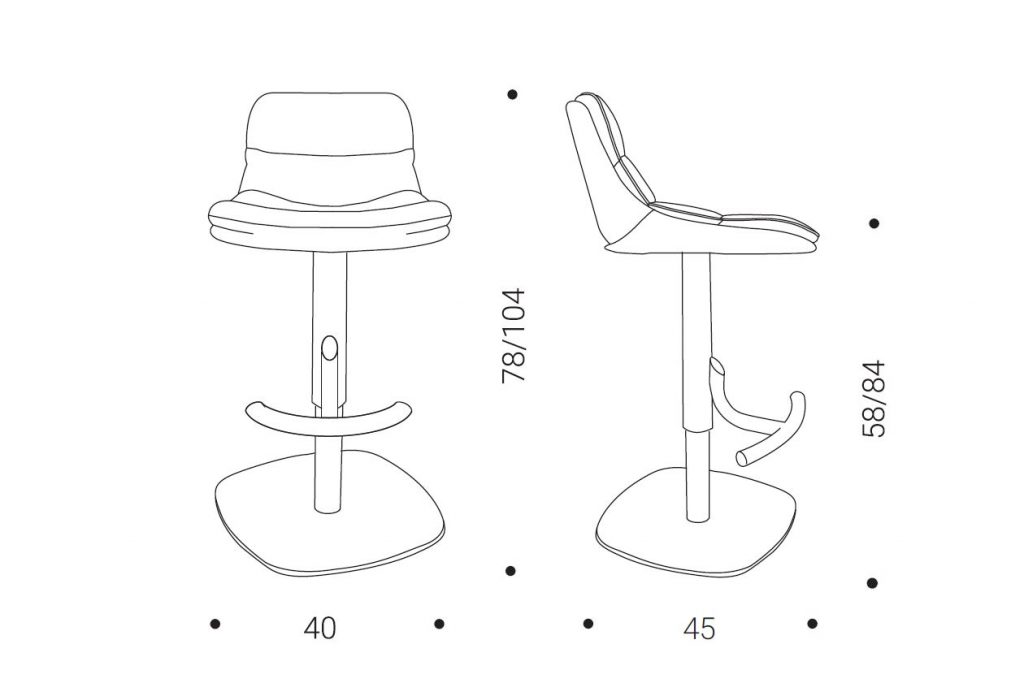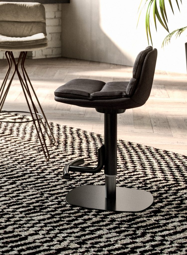 Adjustable stool with gas piston and padded seat, upholstered in leather or velvet,