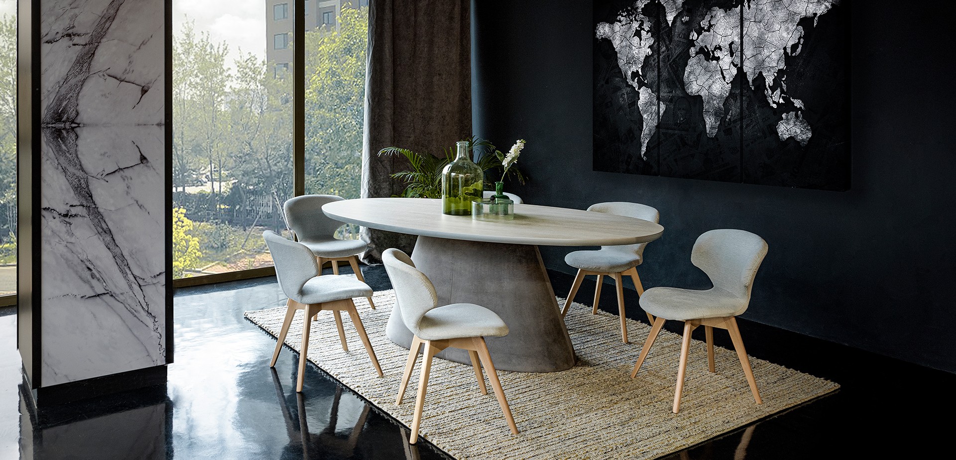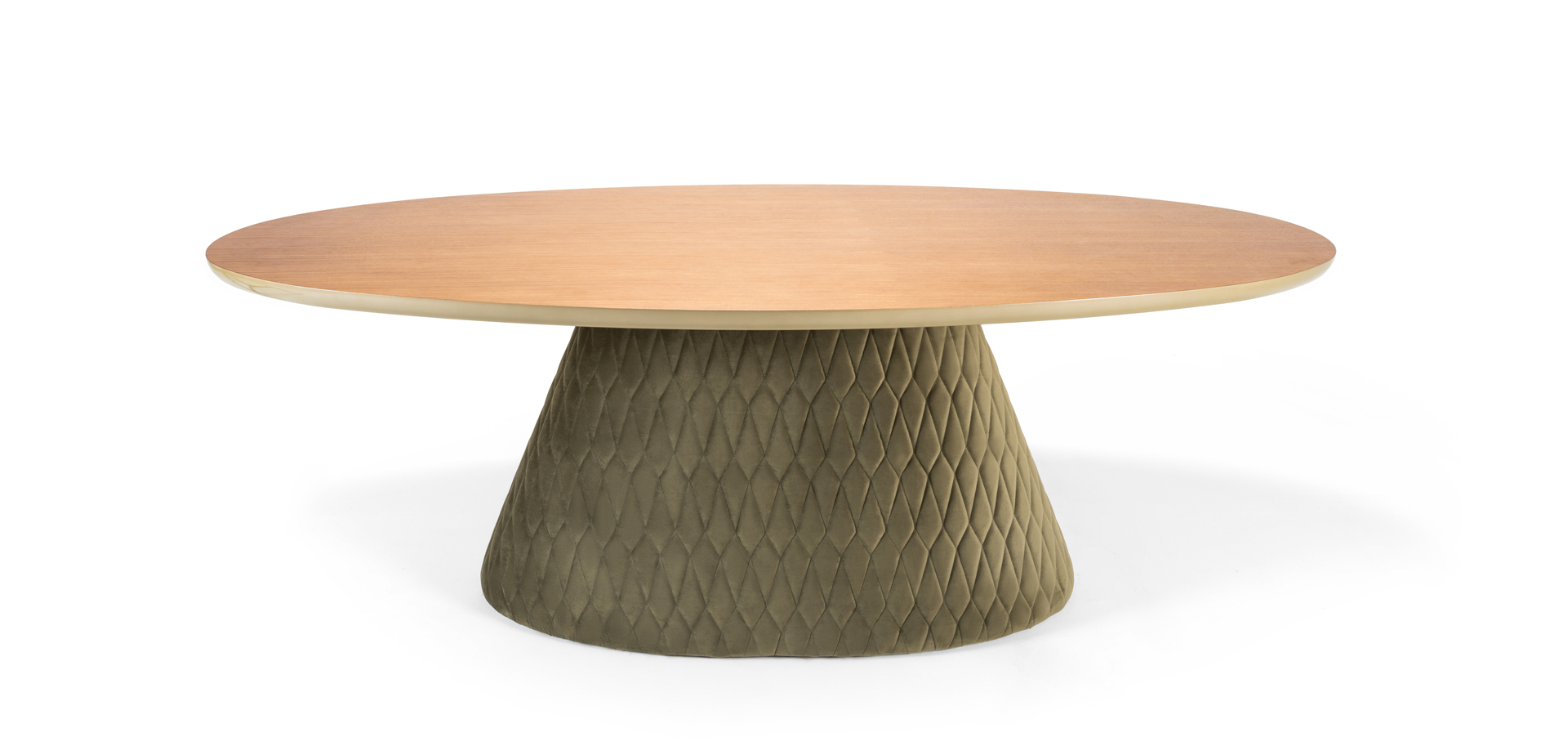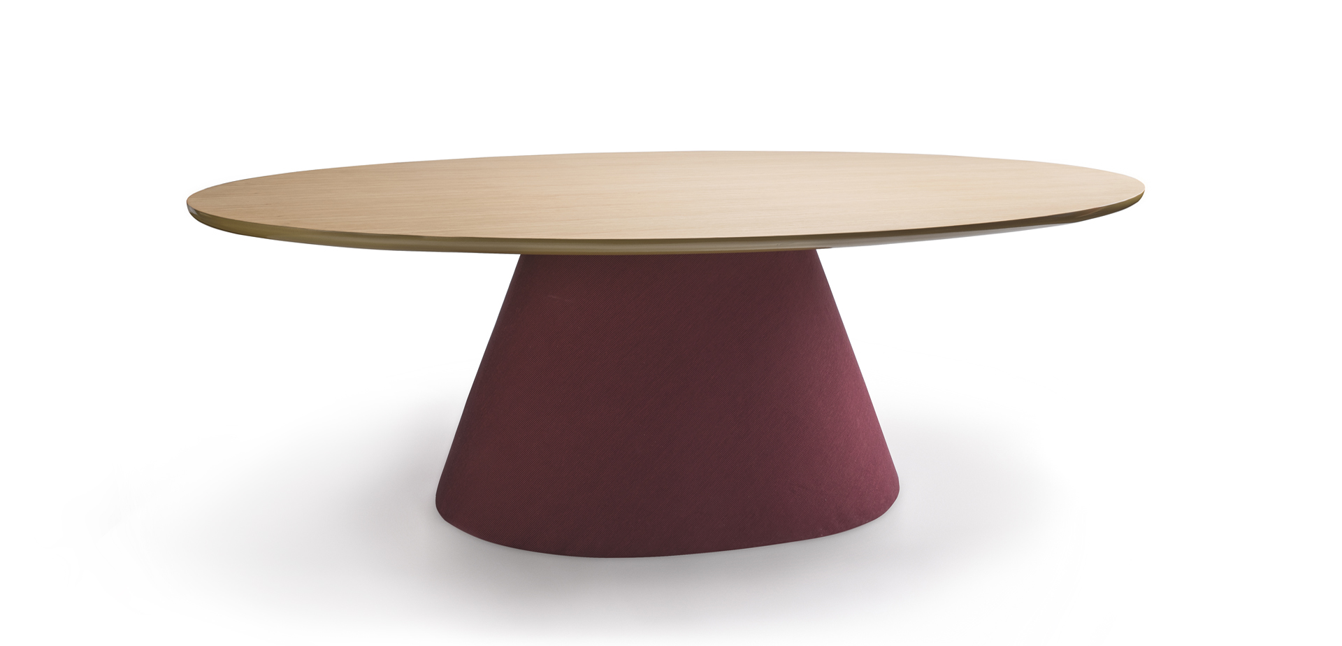 – tabletop made of MDF veneered in oak and the leg is made of upholstered solid beech wood and chipboard.