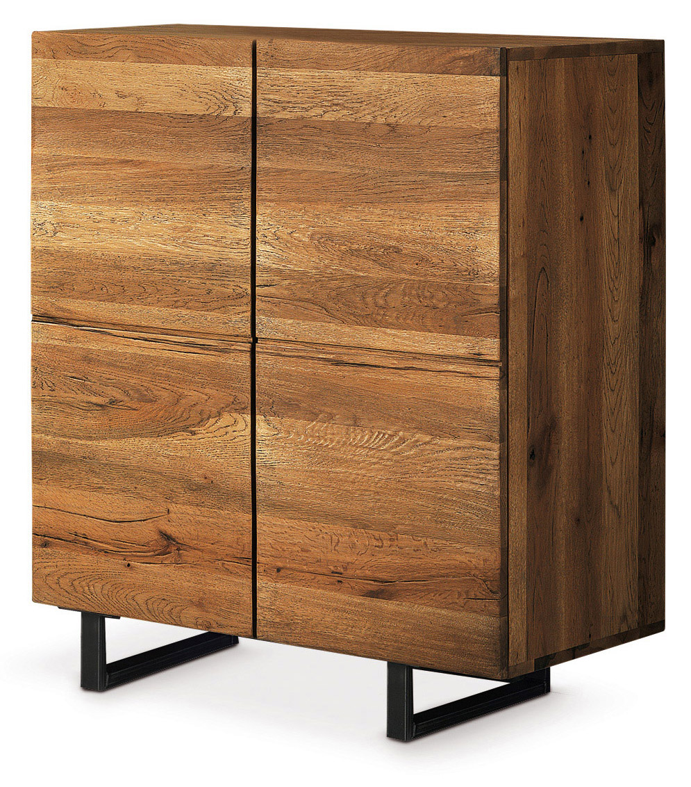 Solid wild oak cabinet with metal feet.