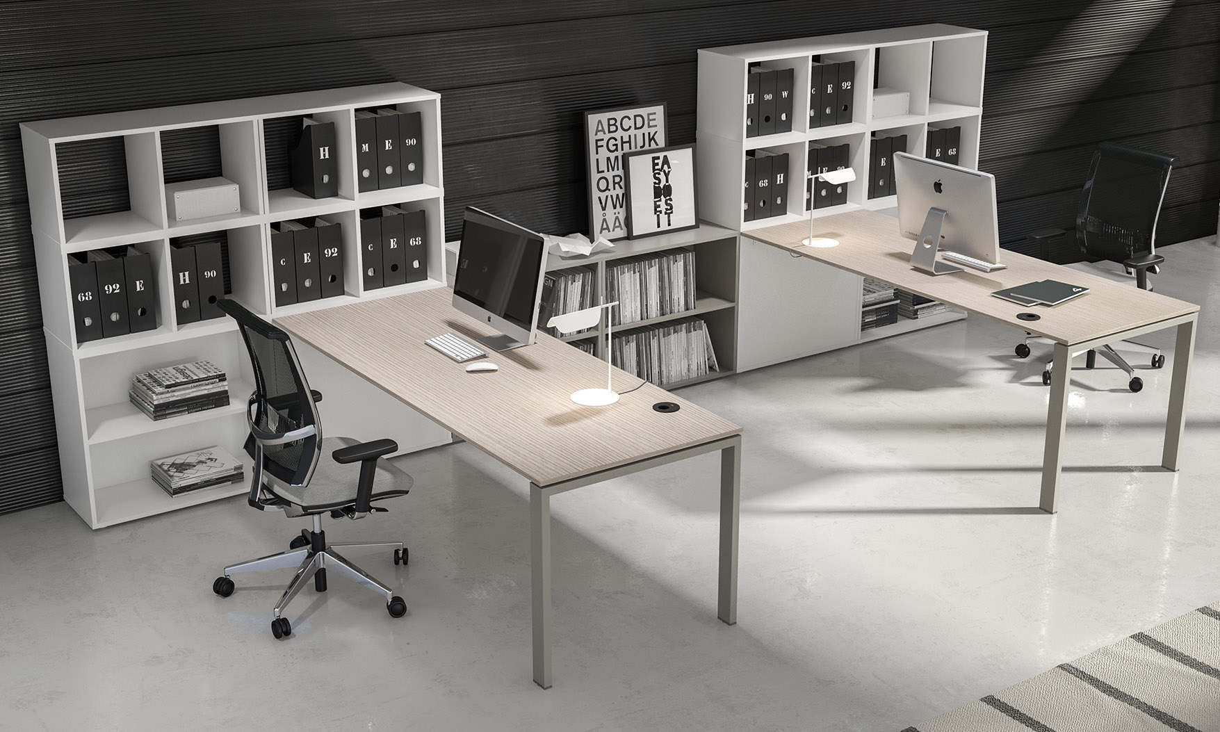 COMPOSITIONS DECLINED BY VARIED ELEMENTS: BASIC FURNITURE, BOOKSHELVES, WRITING DESKS WITH VARIOUS