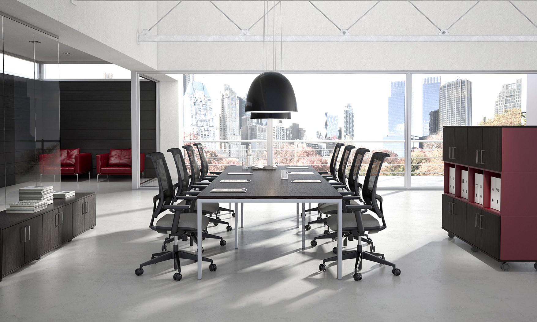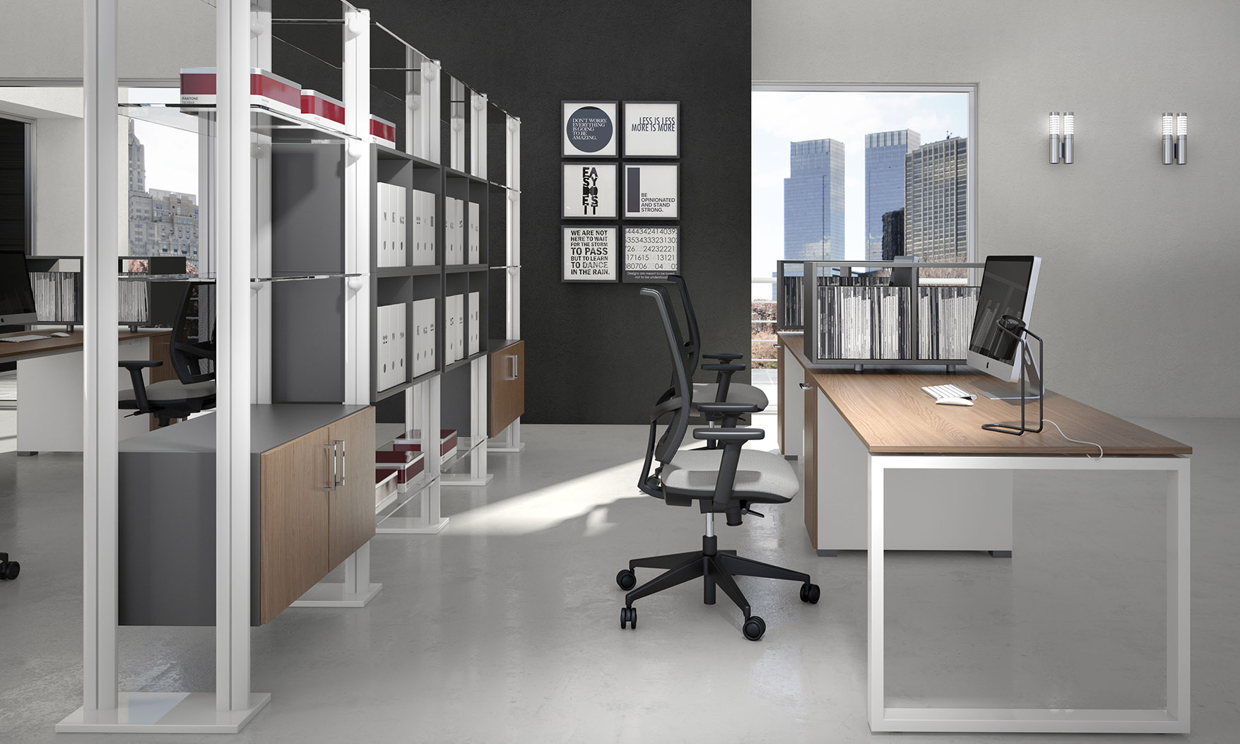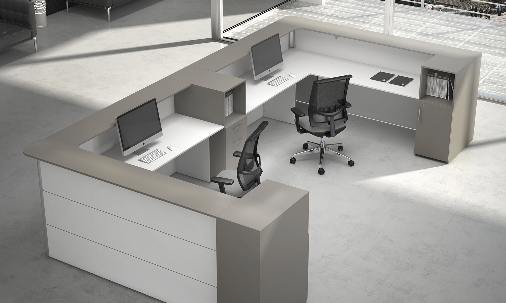 ARCHITECTURAL ENVIRONEMNETS WHICH LOOK WITH INTERESTAT DESIGN, AND STRETCH IN WORKING SPACE, INVADING IT WITH