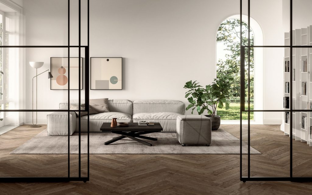 Coffee table that becomes a dining table, completely made of wood for the first time.