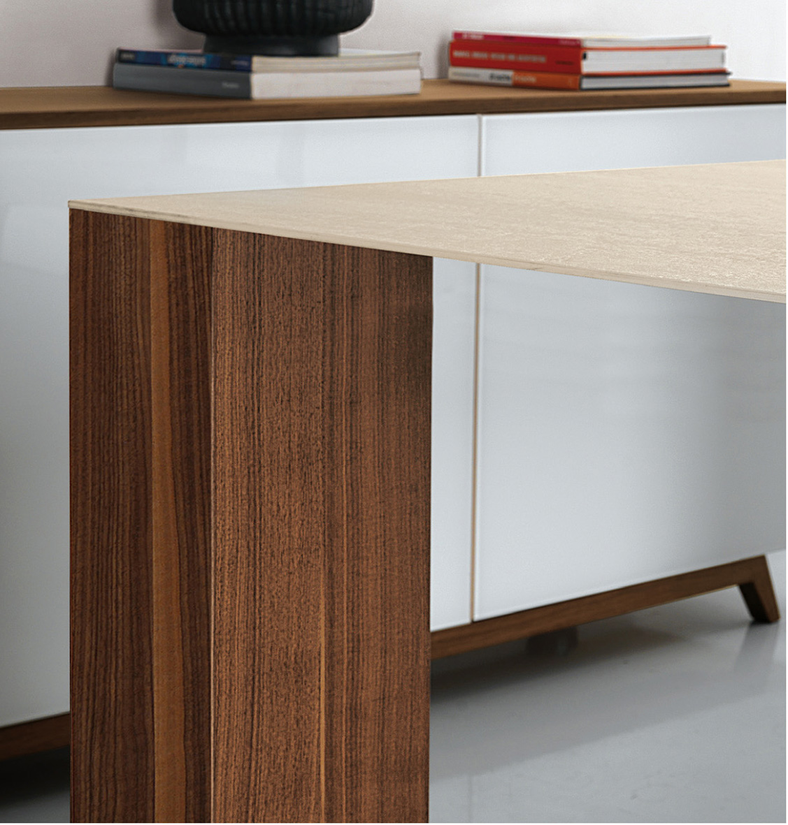 Extendable Thin table ceramic top and solid wood legs, sideboard and cupboard matching to recreate the perfect set even in your living room.