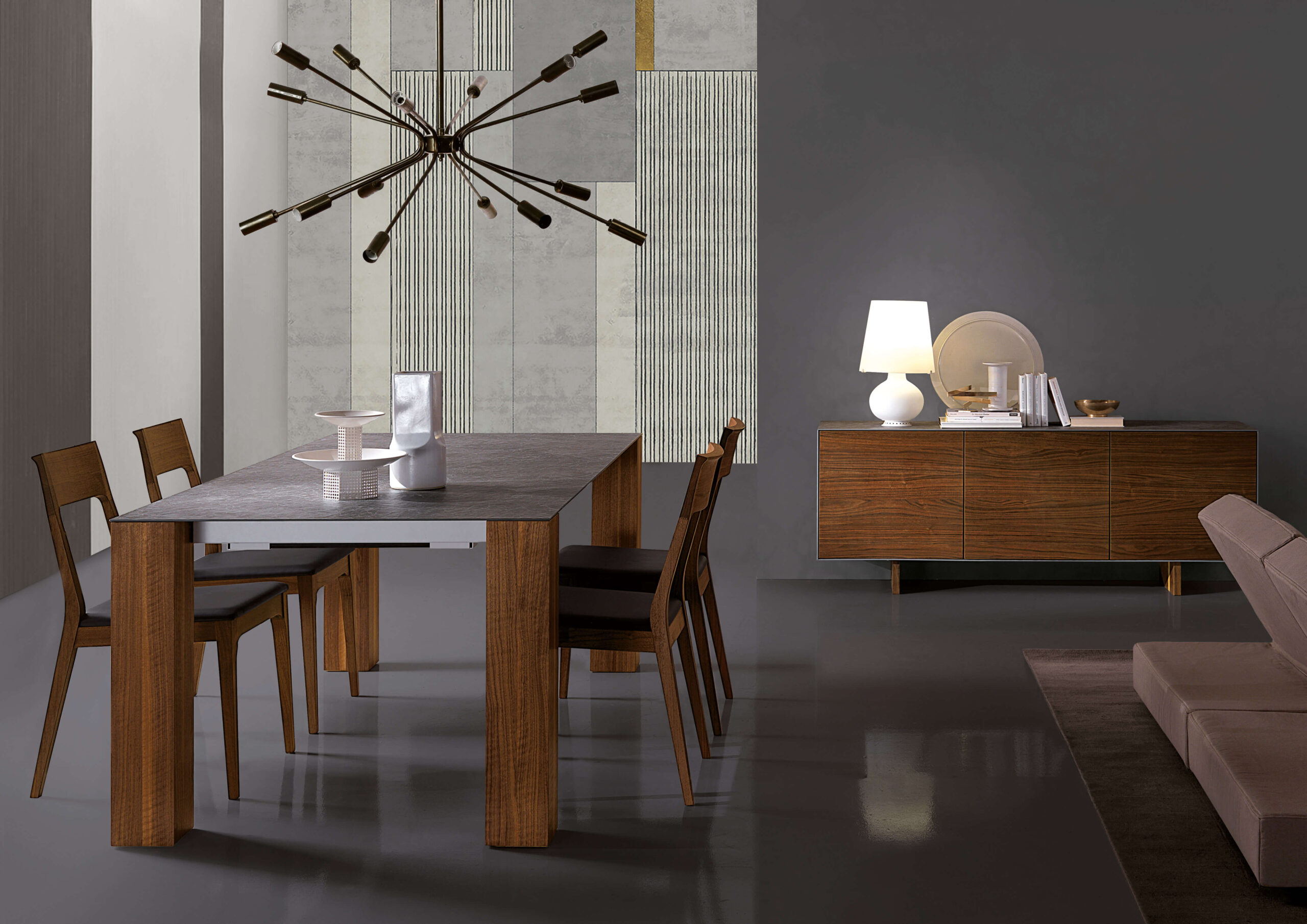 Extendable Thin table ceramic top and solid wood legs, sideboard and cupboard matching to recreate the perfect set even in your living room.