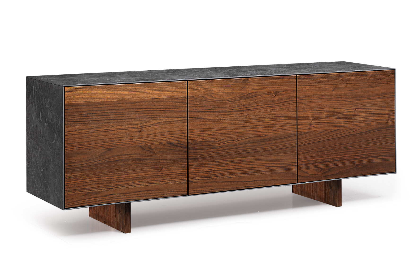 Sideboard with ceramic structure with veneered walnut doors and solid feet