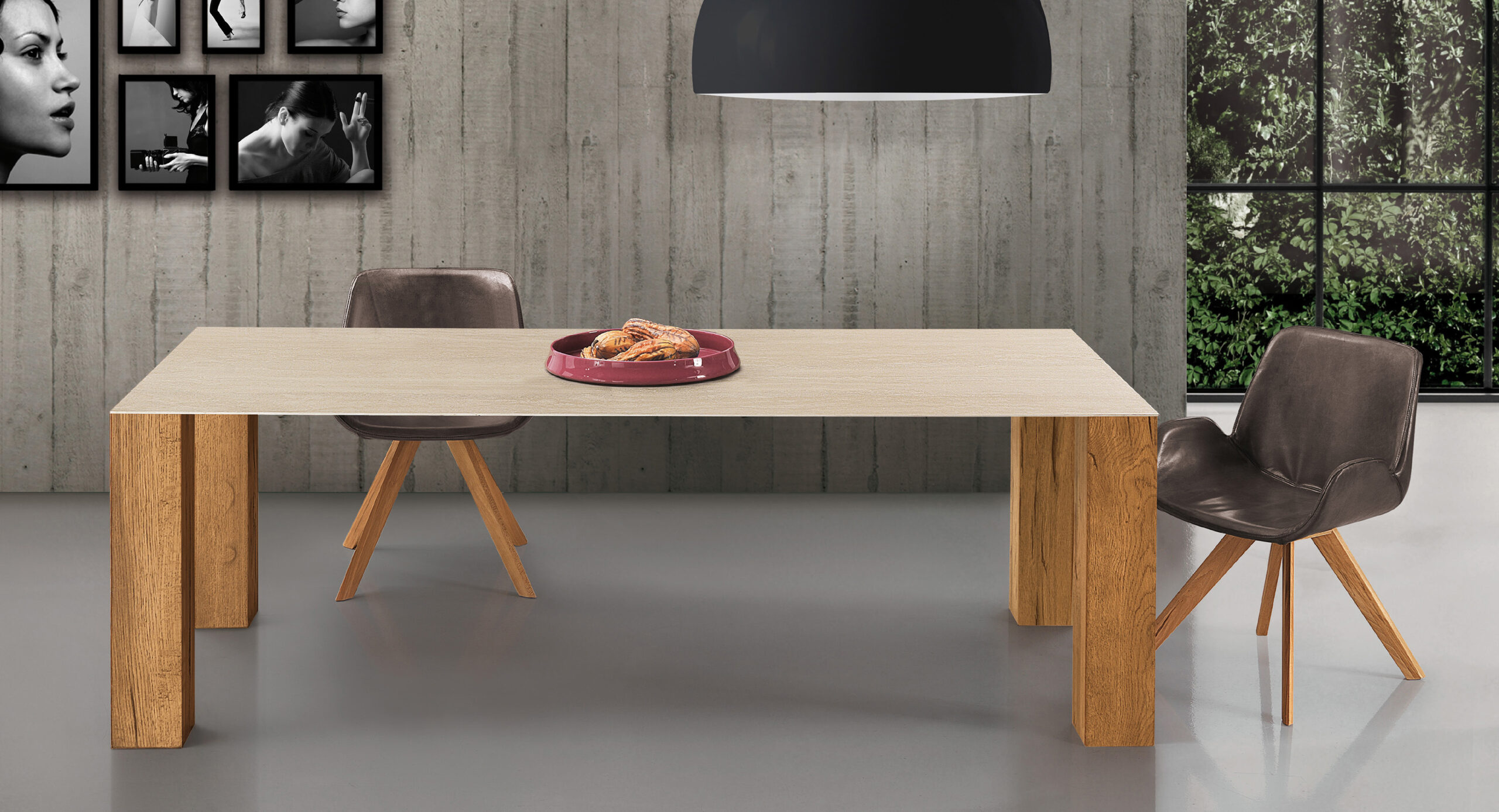 Thin table with ceramic top and solid oak wood legs, sideboard and cupboard matching to recreate the perfect set even in your living room.