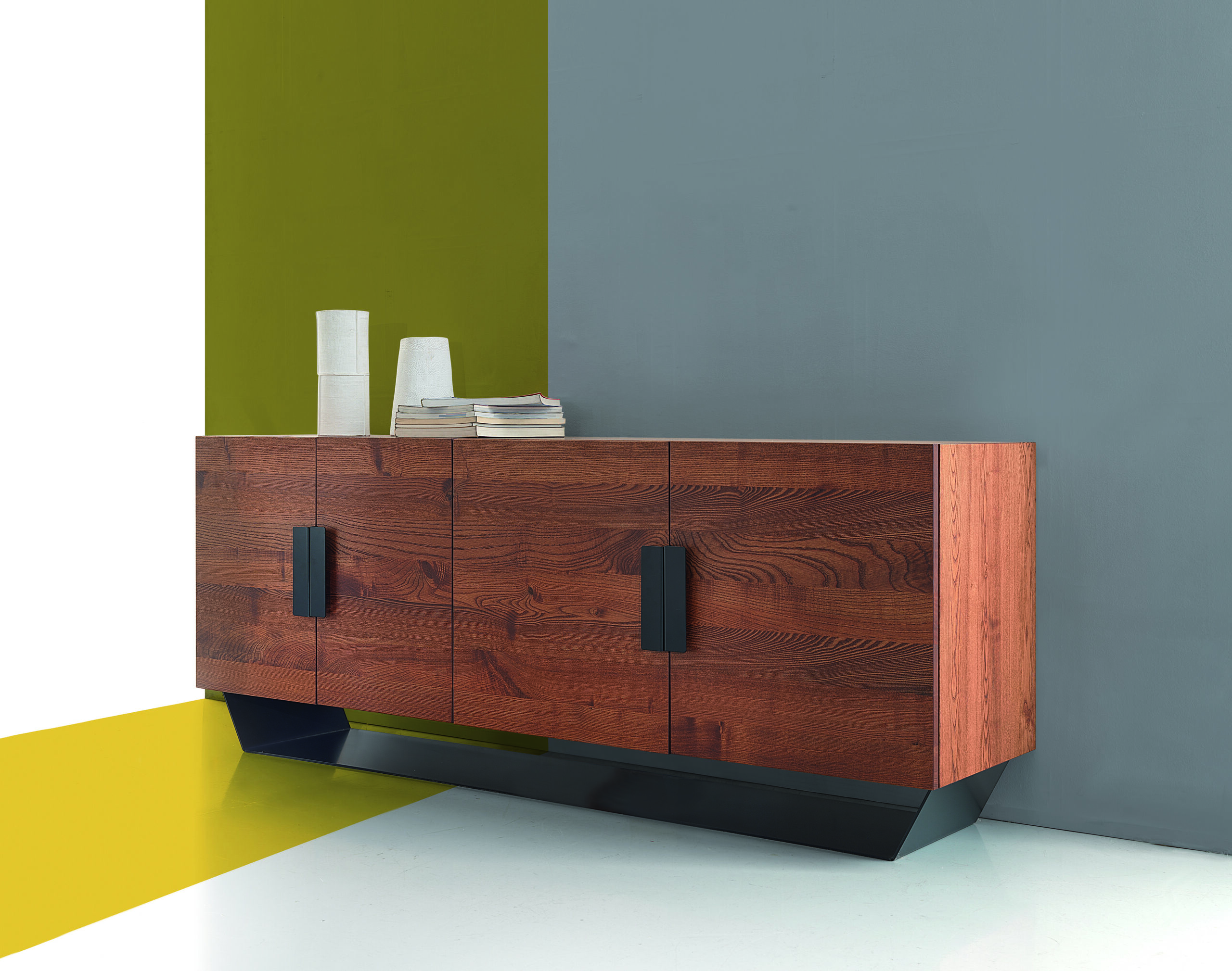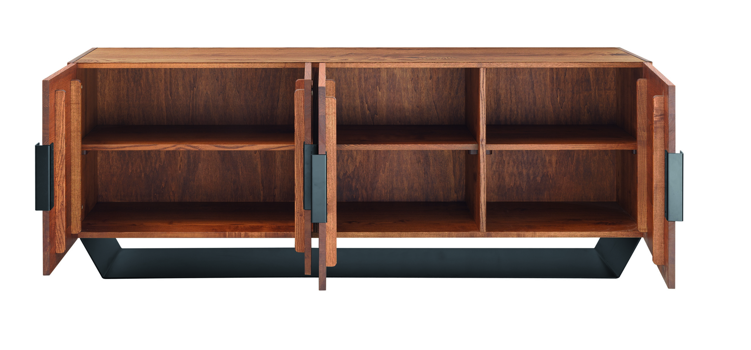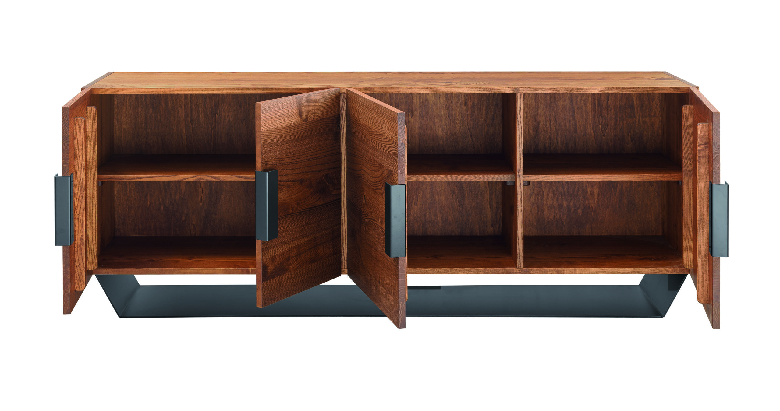 4 Doors sideboard in solid wild ash, metal base and handles.